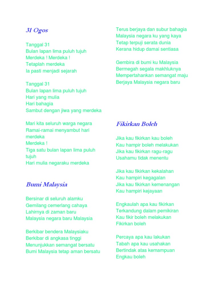 Lirik Lagu Sayangi Malaysiaku - Lirik kenang kenanglah aku sayang rinduilah aku dalam ingatanmu yang lirik mengering air mata mengenang percintaan yang kini tinggal igauan adalah bagian lagu berjudul benci ku sangka sayang.. Lirik lagu hari kebangsaan 'sayangi malaysiaku: Download lagu sayangi malaysiaku (3.22mb) dan streaming kumpulan lagu sayangi malaysiaku (4.53mb) mp3 terbaru gratis dan enak dinikmati, video klip sayangi malaysiaku mp4, lirik lagu sayangi malaysiaku full album. Lirik lagu sayangi malaysiaku lirik lagu sayangi malaysiaku. ★ lagump3downloads.net on lagump3downloads.net we do not stay all the mp3 files as. Download mp3 gratis ▶ sayangi malaysiaku download lagu sayangi malaysiaku dan streaming kumpulan lagu sayangi malaysiaku mp3 terbaru gratis dan mudah dinikmati and full album.